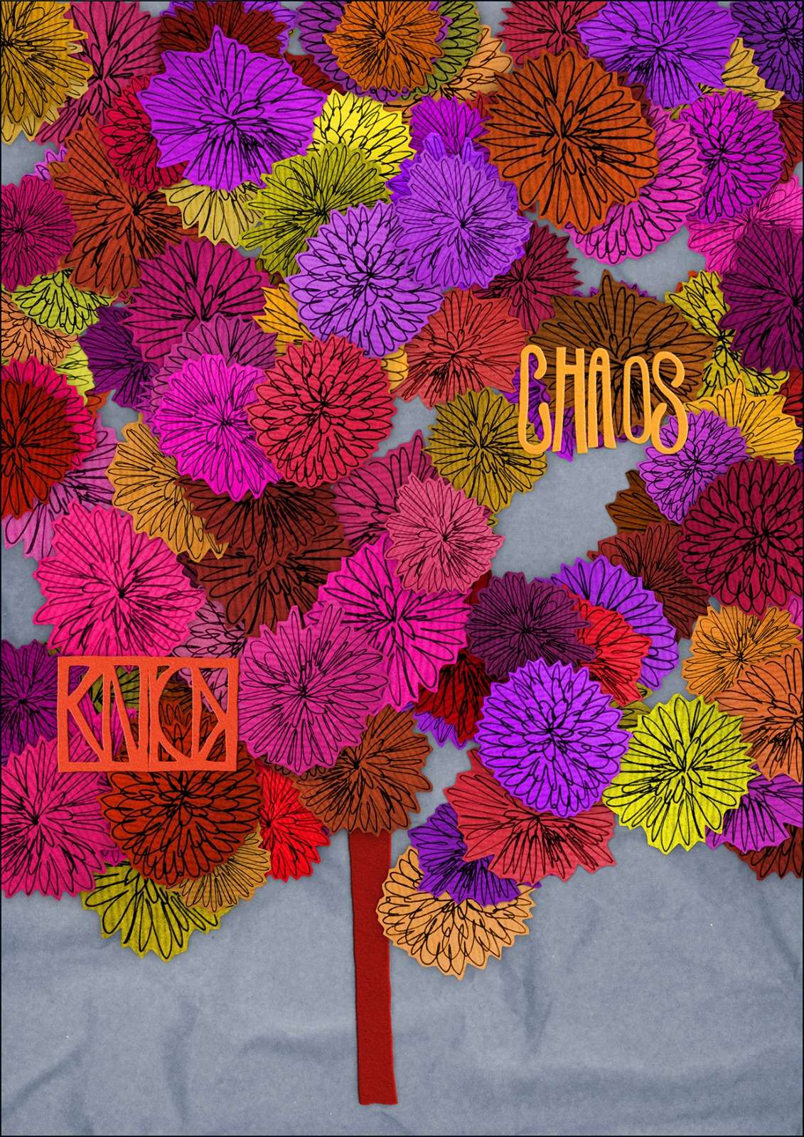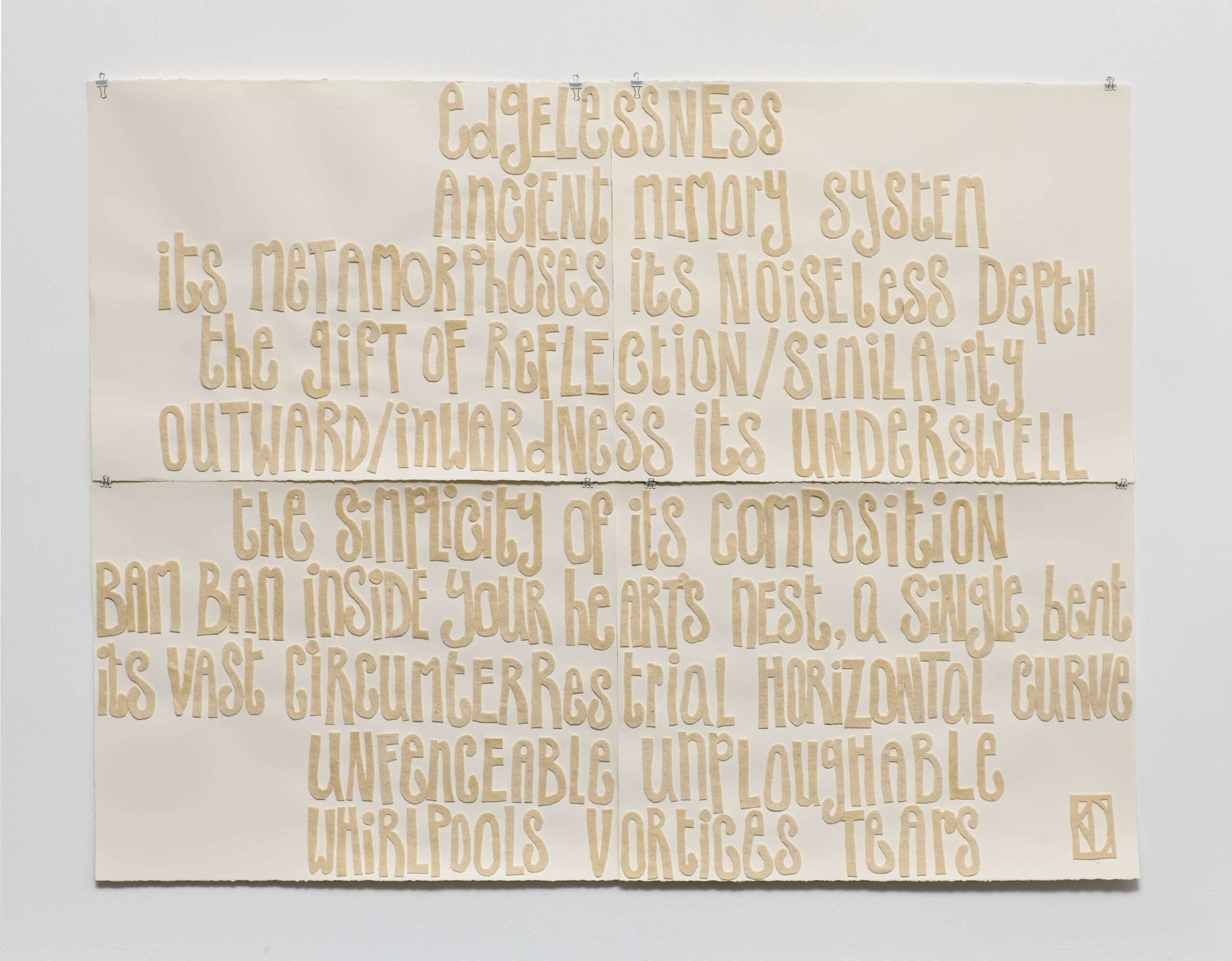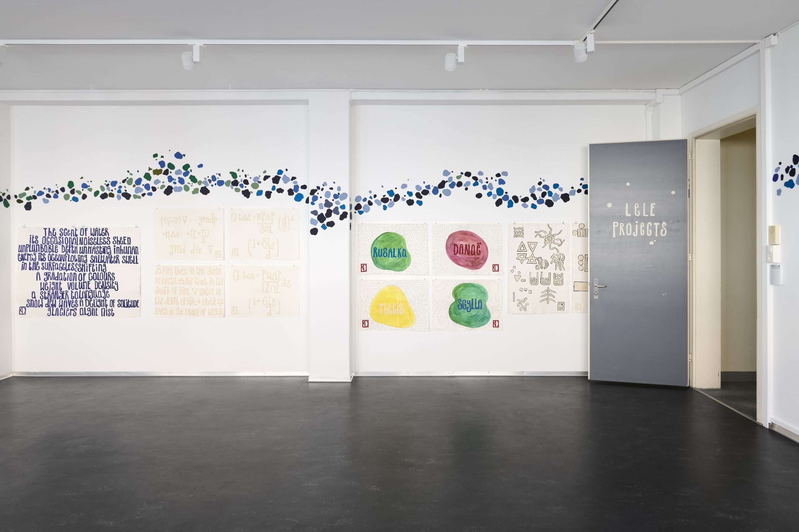 Poster for the exhibition, which featured drawings and collages from Daudy’s studio, curated by Cora Sheibani. The works were exhibited floor to ceiling as they are installed at Daudy’st studio.