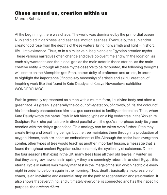 Daudy had two works in the show. One with her long term collaborator Kostya Novoselov “To Live Your Life is Not As Simple As To Cross A Field” 2019 and “Sound Passing Through Circumstance” 2019. Both works were commissioned by the Yorkshire Sculpture Park for the exhibition WonderChaos in 2019.