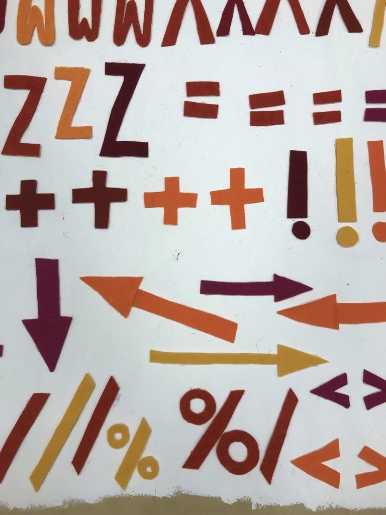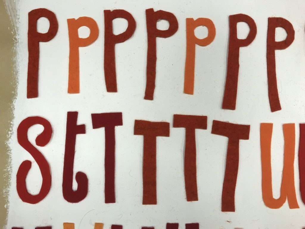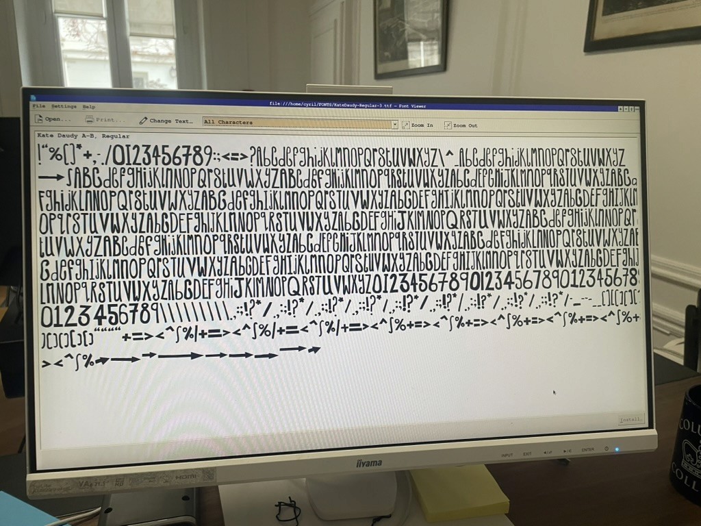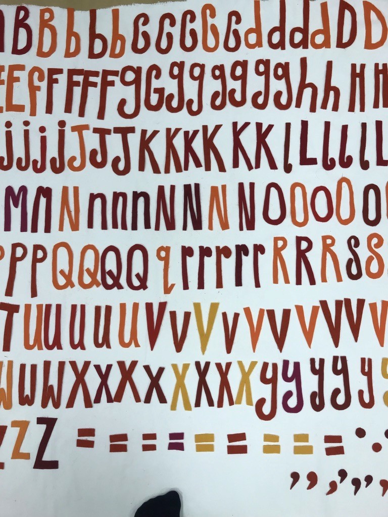 In an epic weekend of cutting out letters Daudy made 5 examples of each letter of the alphabet and various punctuation. The letters were then uploaded to a programme by maker Tomasz Kowalski in 3 versions, including a randomised version which is the one Daudy occasionally uses for map-making and other printed works.