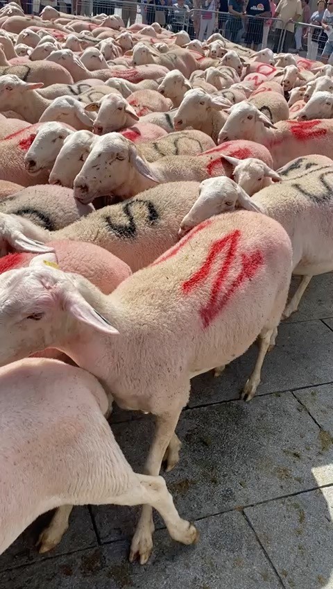 flock of sheep at Segovia aqueduct