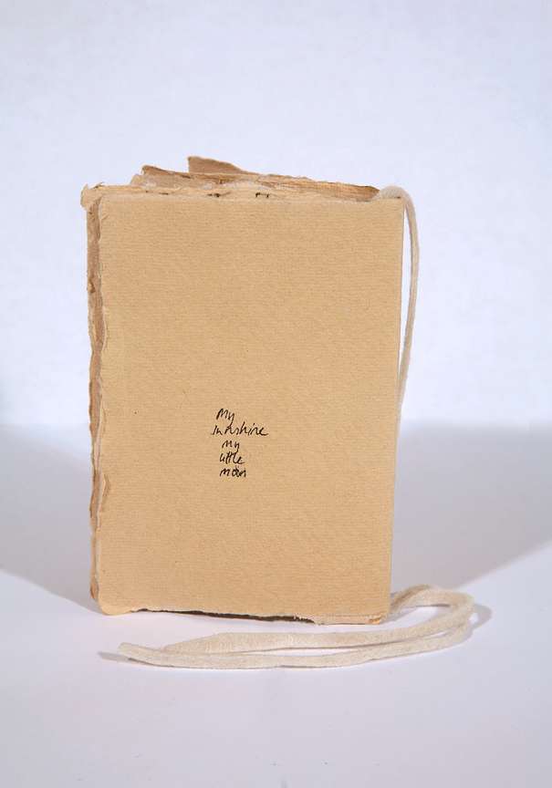 The idea of these books was to make an entire library of little handmade books which featured diary entries, poems written out with collages, and were tied up with felt ribbons. They were kept in small boxes from Japan and all of them sold so there are no small ones left. Daudy makes books as a project eg perhaps 10/12 a year. More recently a large book of pastel drawings, house paint and ash inspired by the background details from paintings by Francis Bacon.