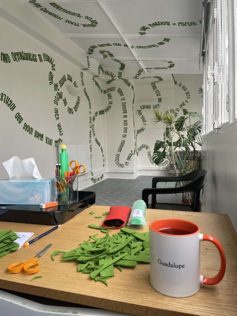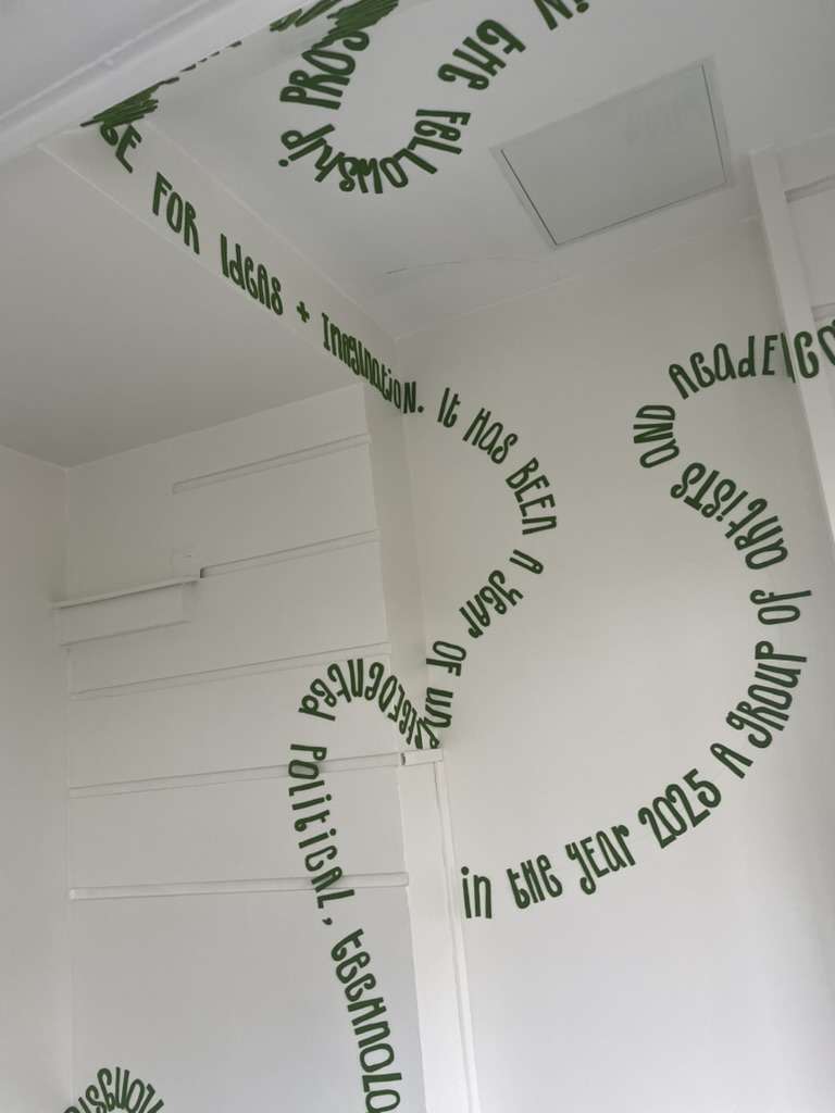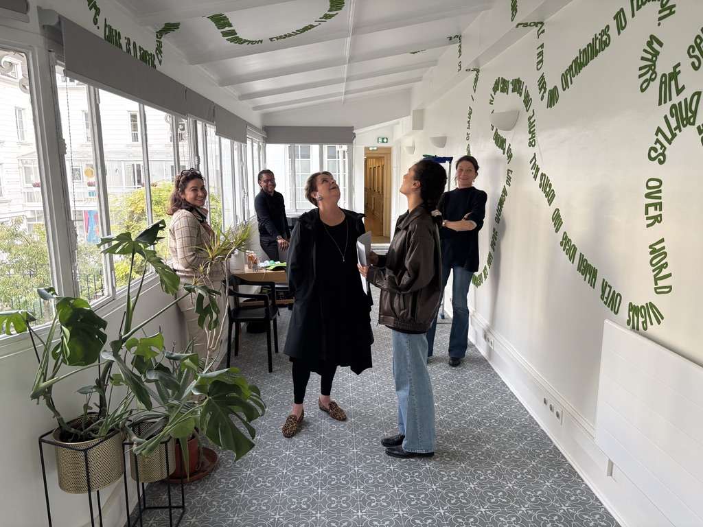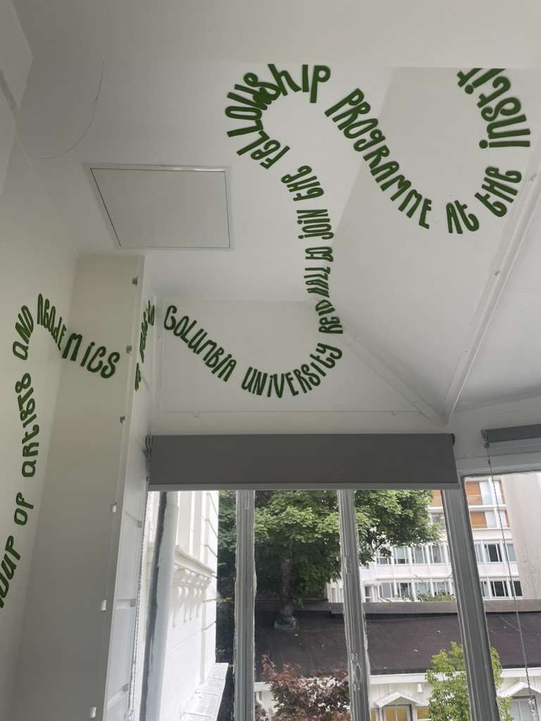 Daudy’s commission in the Garden Room, Reid Hall, Paris, describes the time she spent as a Fellow at Columbia University’s Institute for Ideas and Imagination and its socio-political context.